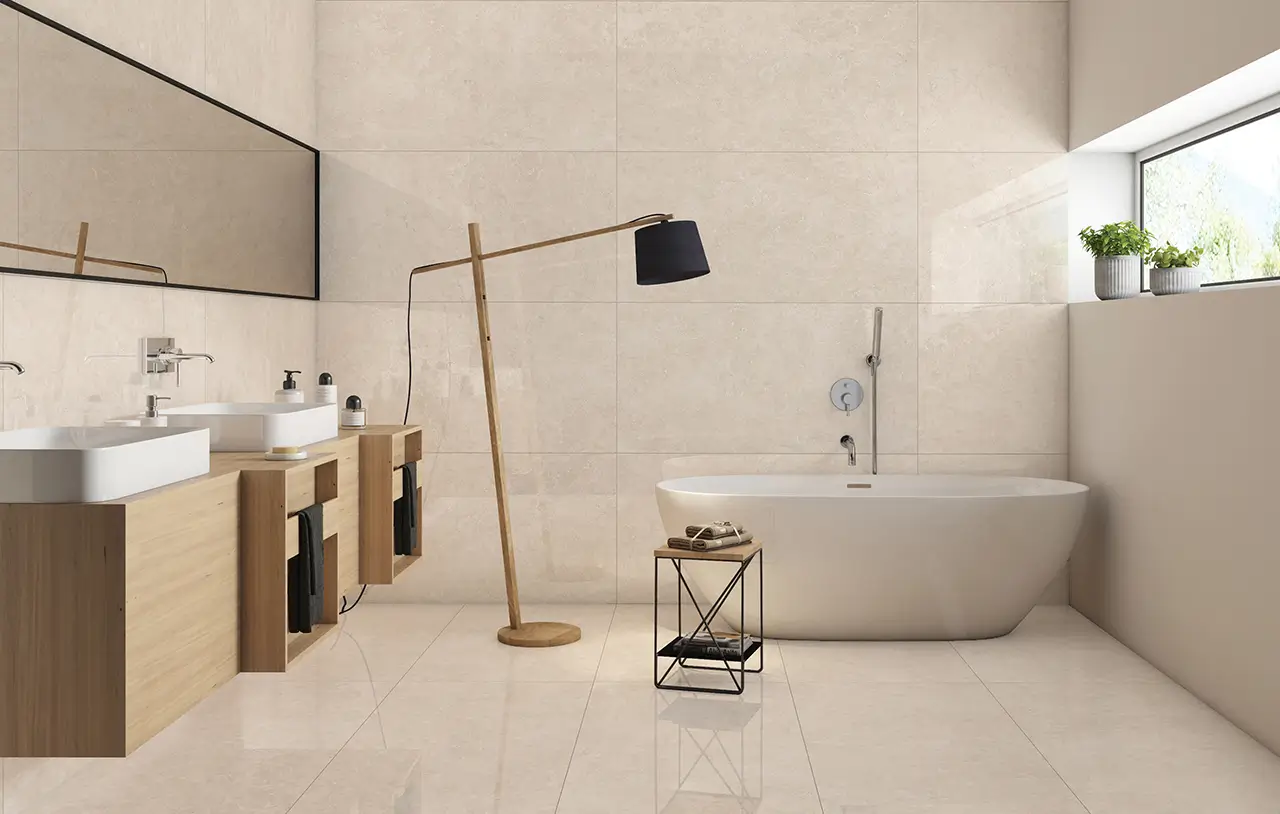 Our bathroom porcelain tiles are designed to create calm, organised, and hygienic spaces while supporting everyday functionality. Colour options focus on light and neutral tones that enhance brightness and create a clean, spacious feel in bathrooms. Surface finishes such as matte and refined textures offer a soft, contemporary appearance while supporting easy cleaning and slip-aware performance.